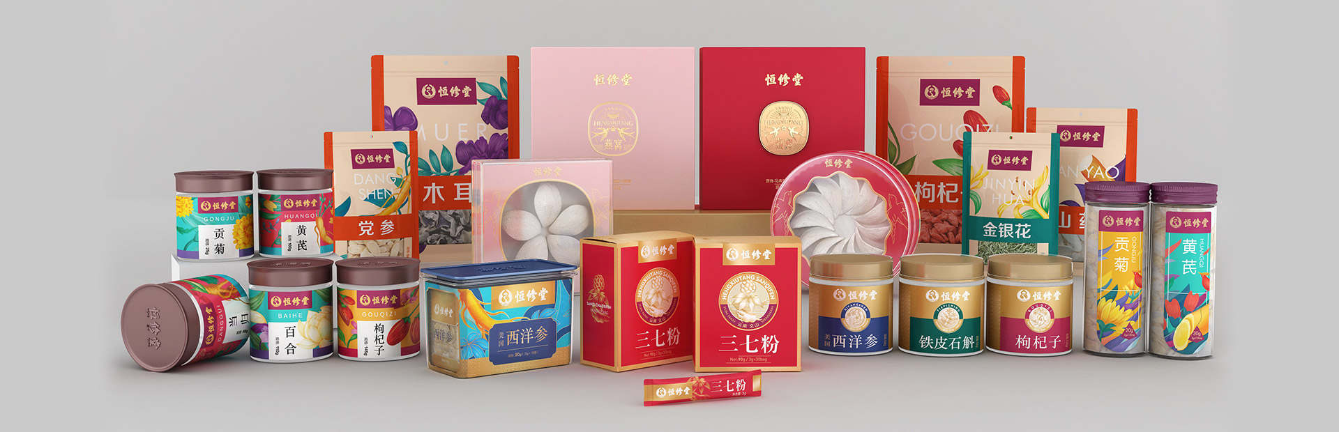 李華清項目團隊梳理了恒修堂產品線,精制飲片和貴細飲片在戰略色彩上做了區隔,精制飲片運用品牌色彩,貴系加入金色增加產品價值感。梳理的產品線色彩為恒修堂新增產品留出色彩端口,方便系列延伸設計,形成了統一的品牌視覺。